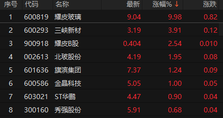 上证报中国证券网讯 10月15日早盘,玻璃板块震荡走高,截至9时50分,耀皮玻璃涨停,走出2连板,三峡新材涨近4%,北玻股份等跟涨。