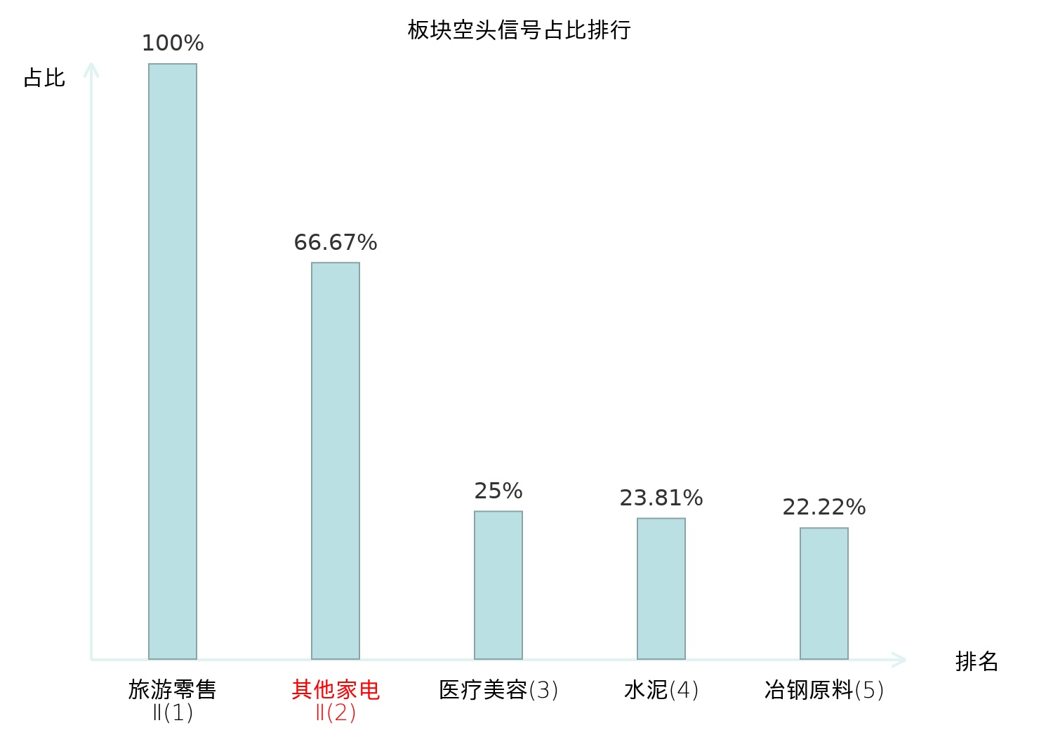 全市场所有行业板块中主力空头信号占比排名中,旅游零售Ⅱ板块位居第一。电机Ⅱ板块名次提升最快,较昨日上升113位。