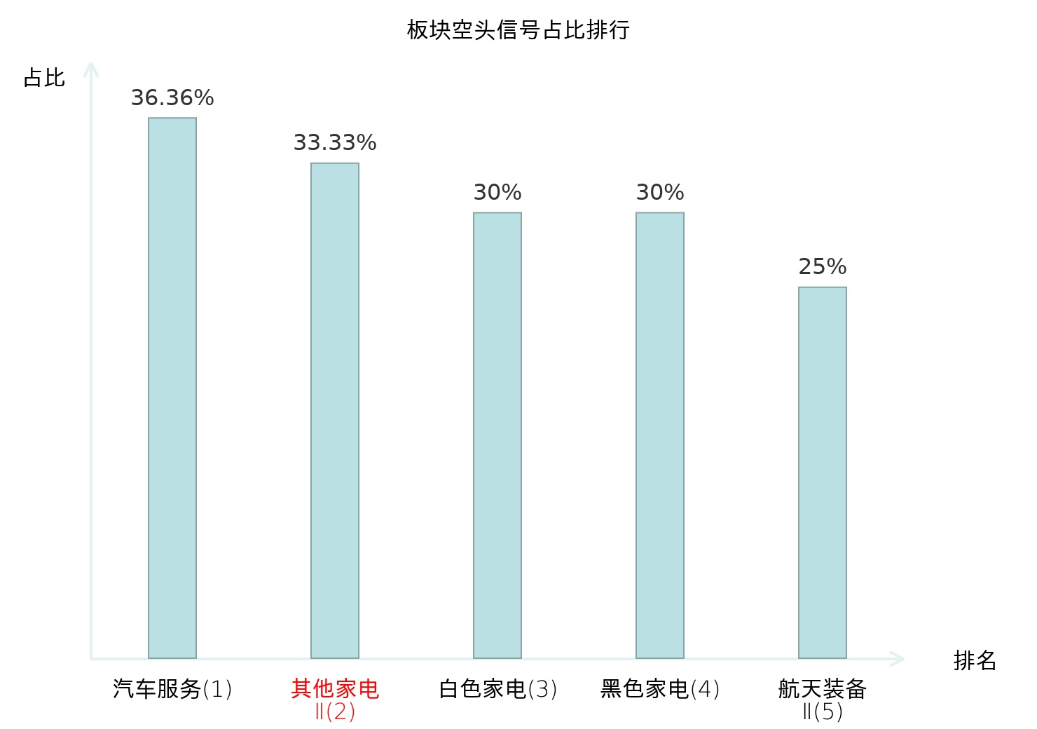 全市场所有行业板块中主力空头信号占比排名中,汽车服务板块位居第一。汽车服务板块名次提升最快,较昨日上升115位。