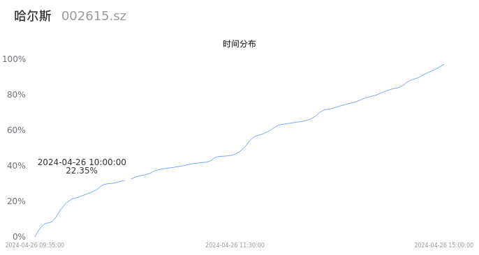 002615哈尔斯2024年04月26日成交16.01万手,成交金额1.21亿元,相较昨日放量3.60万手,换手率5.56%,成交清淡。