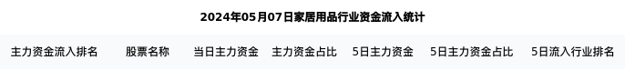从主力资金流向来看,家居用品行业今日主力资金流入12.93亿元,在所有申万二级行业中排名:122/131。