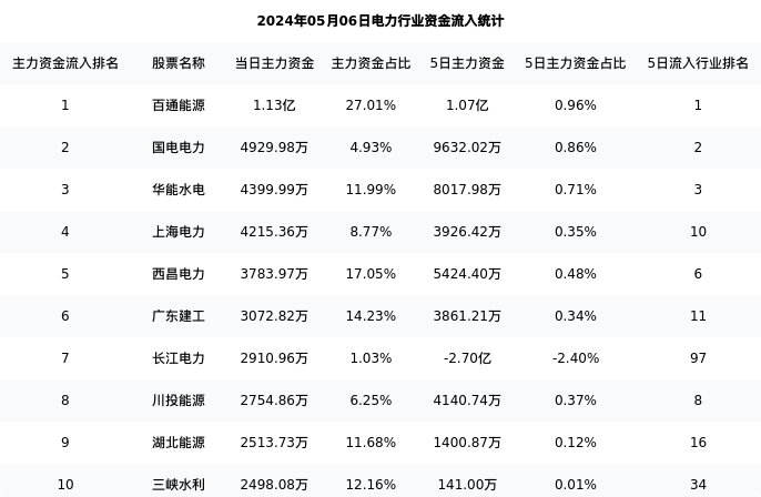 从主力资金流向来看,电力行业今日主力资金流入84.53亿元,在所有申万二级行业中排名:85/131。
