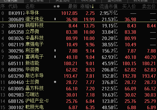 4月2日开盘,半导体板块个股集体走高,截至收盘,澄天伟业、丹邦科技、立昂微、中晶科技、康强电子涨停,晓程科技、和林微纳、晶丰明源、明微电子上涨10%以上。