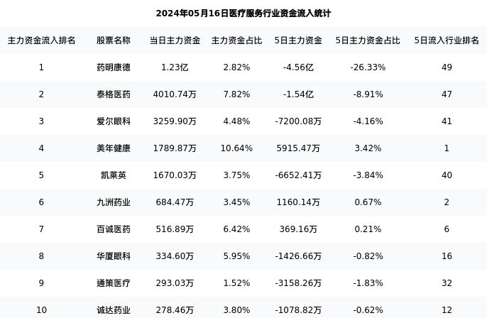 从主力资金流向来看,医疗服务行业今日主力资金流入35.67亿元,在所有申万二级行业中排名:100/131。