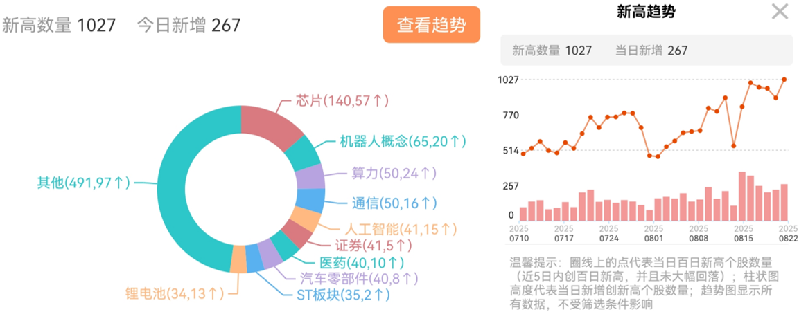 从百日新高,判断板块轮动节奏还是比较准的,上周五的百日新高数据继续新高,目前是在芯片(自主可控)>机器人>算力>通信,目前依旧是芯片全面占据第一位