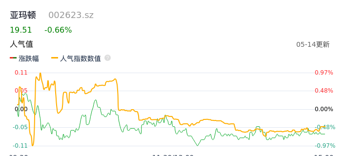 05月14日,亚玛顿收报19.51,股价涨幅-0.66%,成交金额3110.45万元,换手率0.80%。