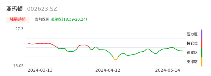 我们来看一下该股的九方特色指标强弱趋势的情况:亚玛顿近日从持仓区下穿到观望区,股价出现持续性调整行情。短期已经转为空头行情,且下跌动能仍未衰竭。建议继续谨慎观望。