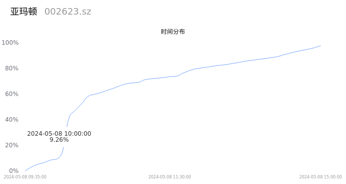 根据成交分布分析,该股票当天放量成交,成交清淡。时间上看,早盘前半小时成交量占据当天总成交量的9.26%;价格上看,成交呈现右偏峰。成交分布分析主要研究股票成交的分布特性,不具有预测功能,请知悉。