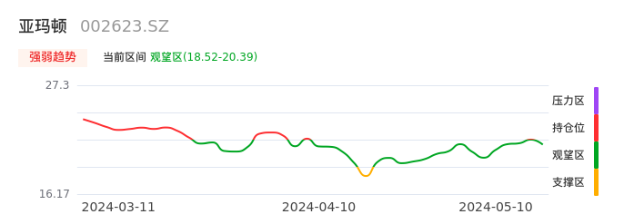 我们来看一下该股的九方特色指标强弱趋势的情况:亚玛顿近日从持仓区下穿到观望区,股价出现持续性调整行情。短期已经转为空头行情,且下跌动能仍未衰竭。建议继续谨慎观望。