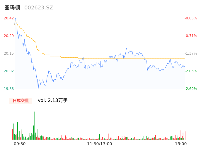 05月10日,亚玛顿收报20.05,股价涨幅-1.86%,成交金额4290.97万元,换手率1.07%。
