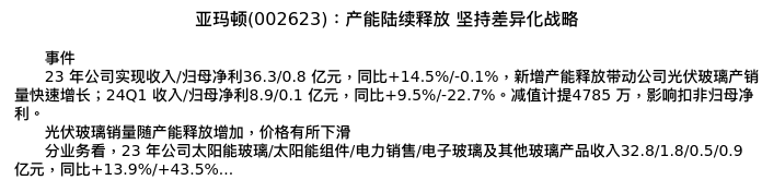 值得注意的是:2024年05月天风证券的鲍荣富/熊可为/王涛分析师,首次发布关于亚玛顿的研究报告,标题为:亚玛顿(002623):产能陆续释放 坚持差异化战略。