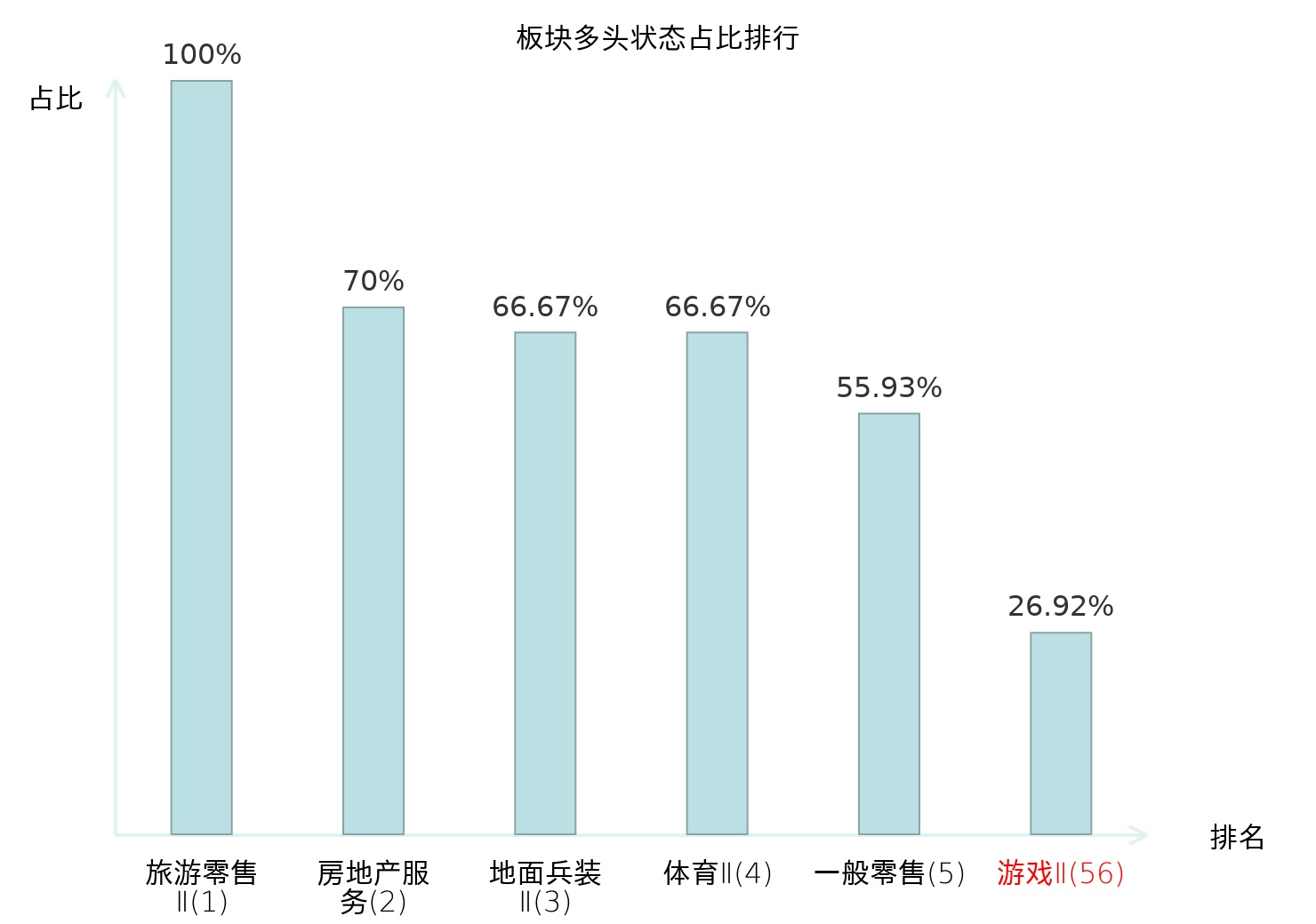 全市场所有行业板块中主力多头状态占比排名中,旅游零售Ⅱ板块位居第一。林业Ⅱ板块名次提升最快,较昨日上升68位。
