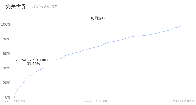 002624完美世界2025年07月15日成交46.22万手,成交金额6.72亿,相较昨日缩量15.50万手,换手率2.53%,成交清淡。