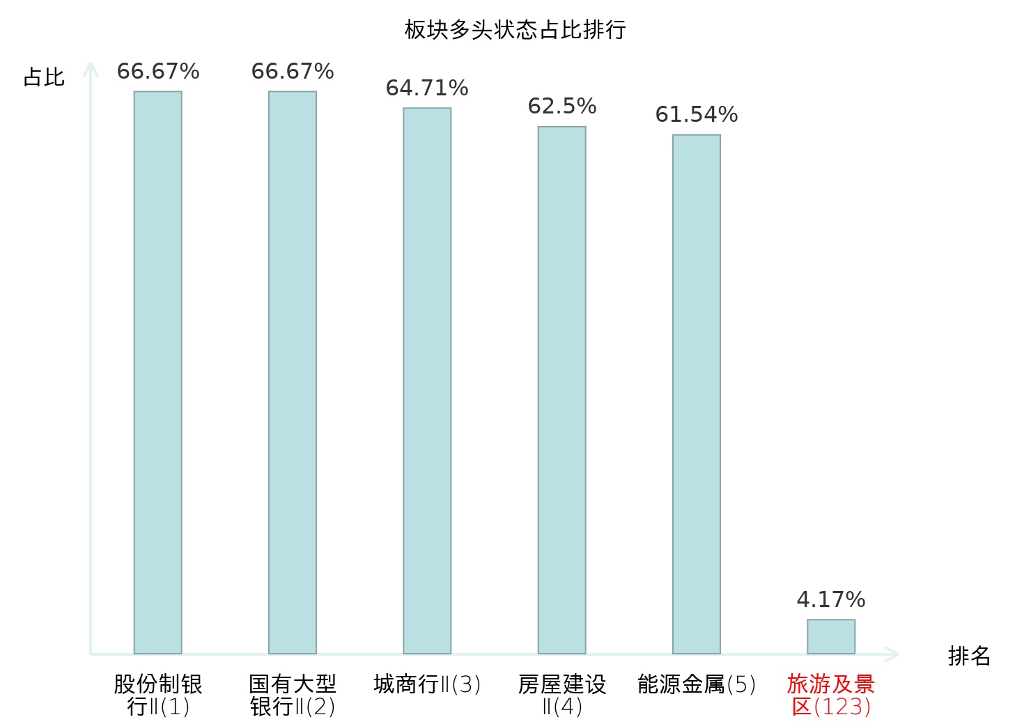 全市场所有行业板块中主力多头状态占比排名中,股份制银行Ⅱ板块位居第一。其他家电Ⅱ板块名次提升最快,较昨日上升102位。