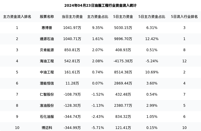 从主力资金流向来看,油服工程行业今日主力资金流入8.07亿元,在所有申万二级行业中排名:87/131。