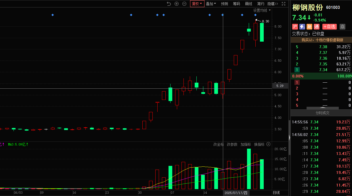 最近佛山大佬做反内卷题材可谓四两拨千斤,7.17日买入1亿柳钢股份涨停,次日高开涨停加速,佛山大佬赚钱离场,但是因为他的光辉与审美市场继续选择柳钢继续往上走变成反内卷高标,这就是大佬的魄力,也是其审美的体现。