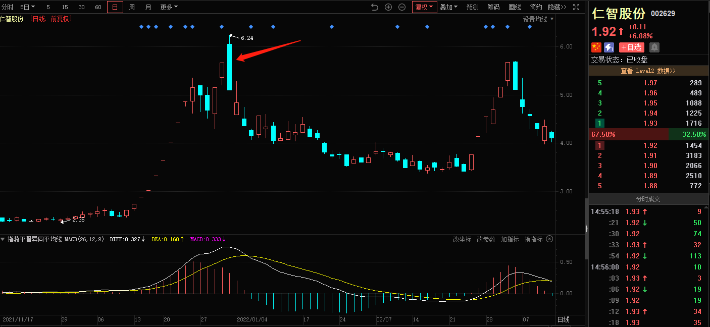 从和源路交易手法去看,前期喜欢顶连续一字,后续也会选择一些高位个股重新整理筹码之后继续往上去做,但是往往加速就是出货节点,仁智股份就是其中之一。