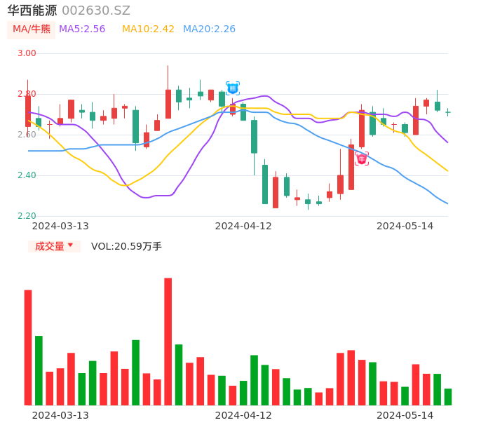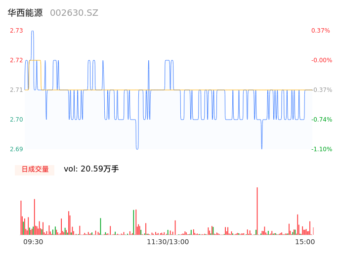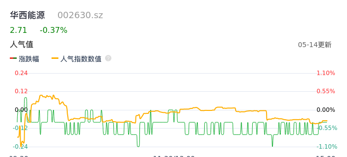 05月14日,华西能源收报2.71,股价涨幅-0.37%,成交金额5575.58万元,换手率1.94%。