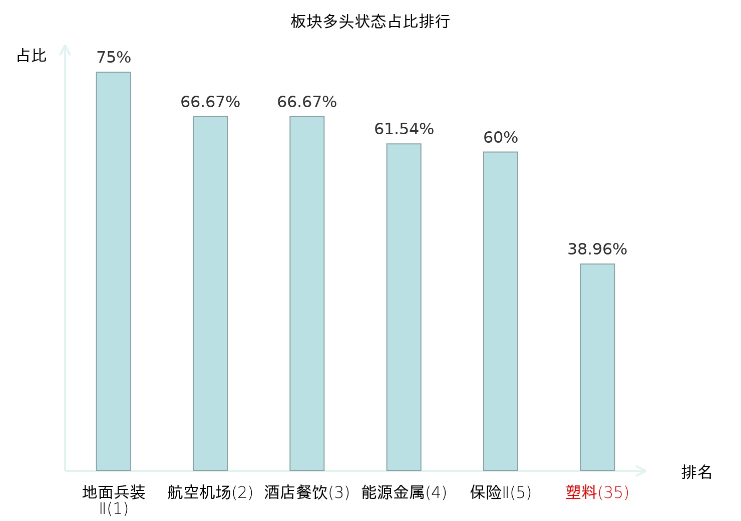 全市场所有行业板块中主力多头状态占比排名中,地面兵装Ⅱ板块位居第一。航天装备Ⅱ板块名次提升最快,较昨日上升103位。