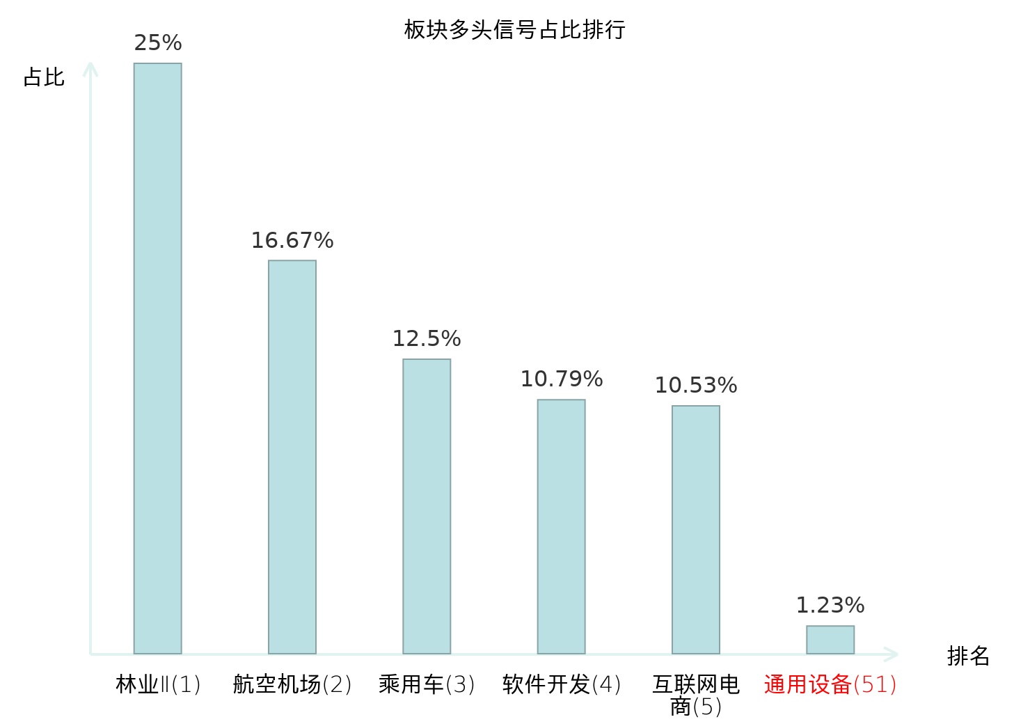 全市场所有行业板块中主力多头信号占比排名中,林业Ⅱ板块位居第一。林业Ⅱ板块名次提升最快,较昨日上升125位。