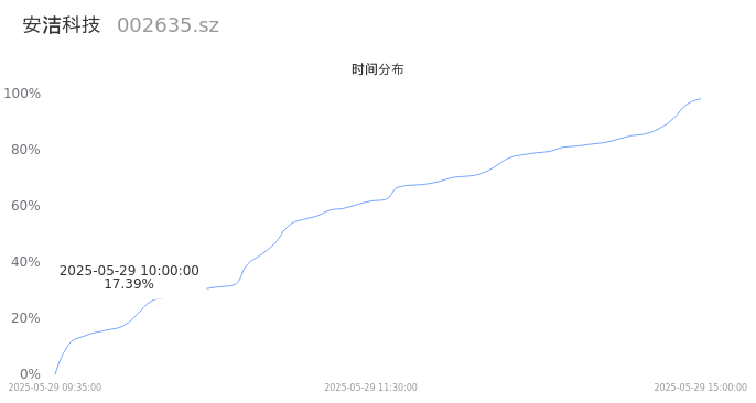 002635安洁科技2025年05月29日成交14.53万手,成交金额1.93亿,相较昨日放量10.09万手,换手率3.67%,成交清淡。
