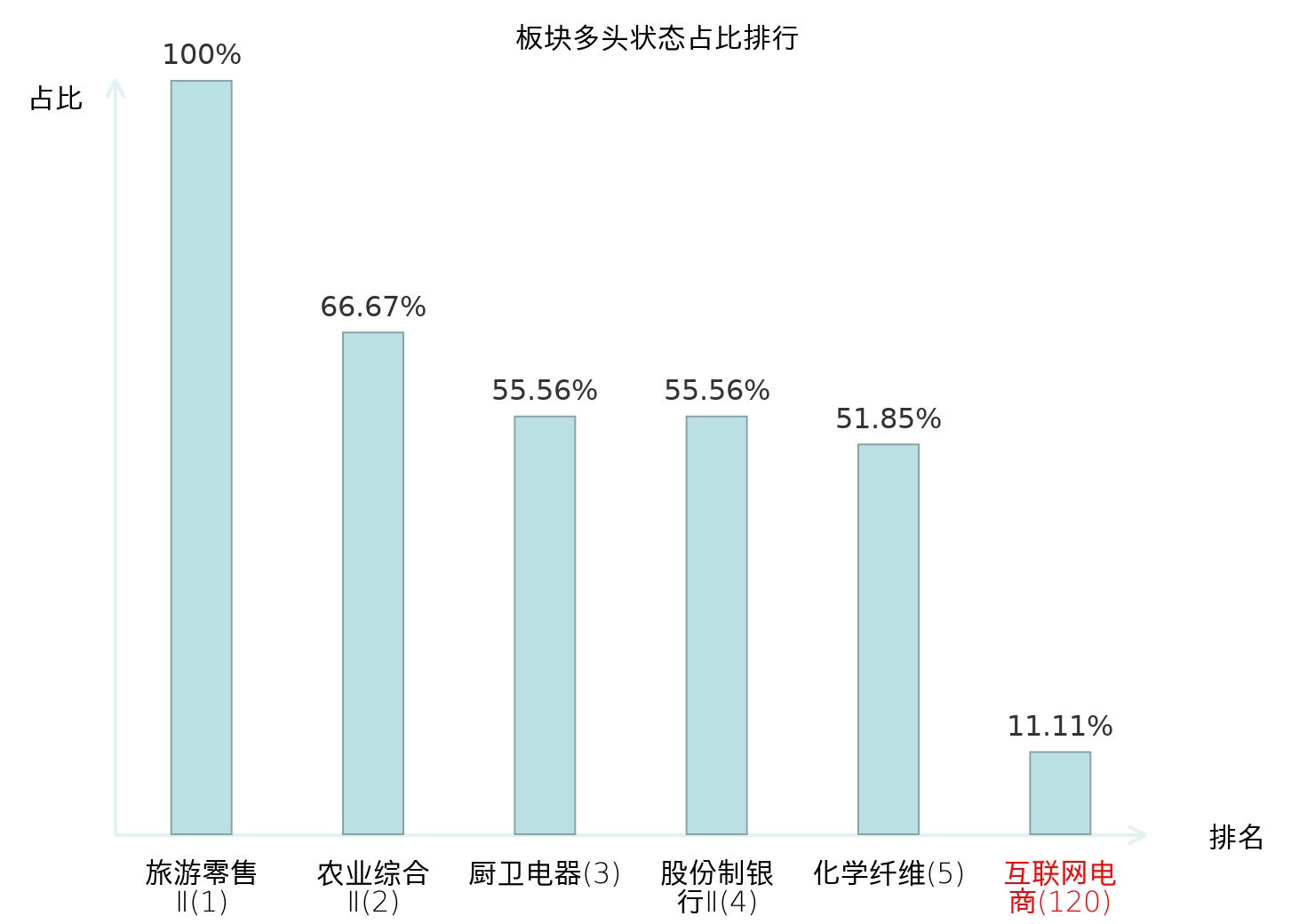 从主力宝信号数据分析,跨境通所属的互联网电商板块中共有2只股票处于主力多头状态,主力多头状态占比在全行业中排名第120位,较昨日持平。较高的排名表明主力对互联网电商板块整体仍持有较强的看多意愿,而排名保持不变则可能反映了主力对该板块态度的稳定。全市场所有行业板块中,旅游零售Ⅱ板块的主力多头状态占比最高,位居第一;国有大型银行Ⅱ板块名次提升最快,较昨日上升103位。这些变动揭示了主力资金在不同行业间的流动趋势,为投资者提供了关于市场情绪和潜在投资机会的重要参考。