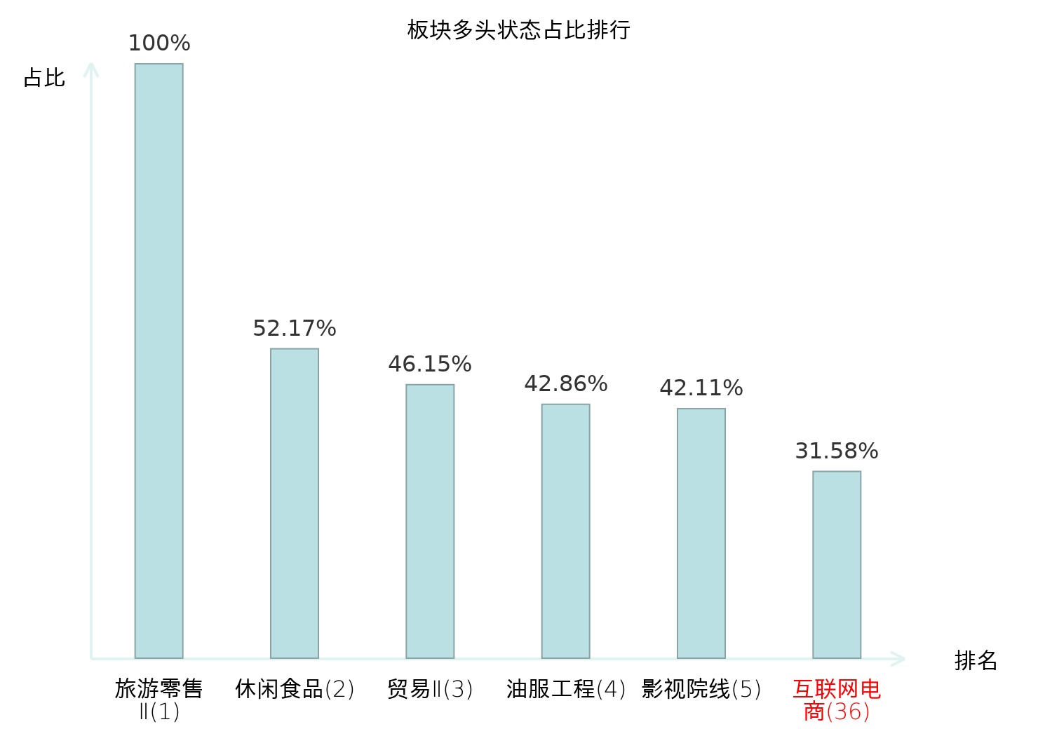 从主力宝信号数据分析,跨境通所属的互联网电商板块中共6只股票处于主力多头状态,主力多头状态占比在全行业中排名第36位,较昨日下降14位。排名较高表明主力对于该板块整体看多意愿较强,但此次排名下降可能反映了主力对该板块态度的微调。全市场所有行业板块中主力多头状态占比排名中,旅游零售Ⅱ板块位居第一。体育Ⅱ板块名次提升最快,较昨日上升99位。这些变动揭示了不同行业间主力资金动向的趋势,为投资者提供了关于市场情绪和潜在投资机会的线索。