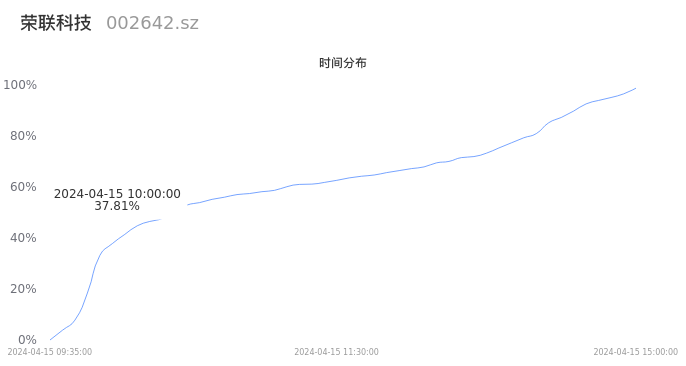 根据成交分布分析,该股票当天放量成交,成交清淡。时间上看,早盘前半小时成交量占据当天总成交量的37.81%;价格上看,成交呈现中间峰。成交分布分析主要研究股票成交的分布特性,不具有预测功能,请知悉。