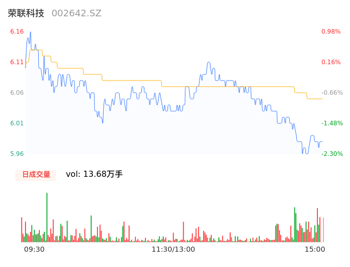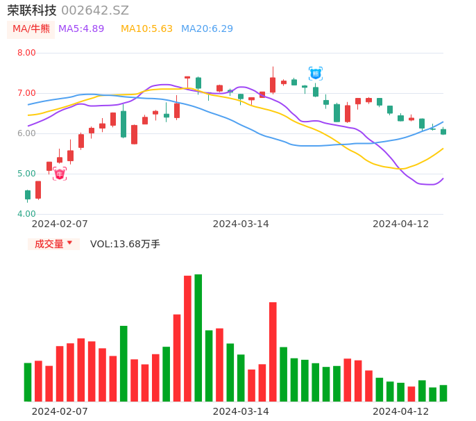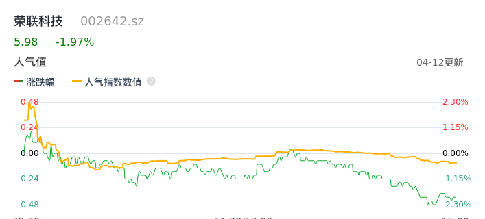 04月12日,荣联科技收报5.98,股价涨幅-1.97%,成交金额8270.23万元,换手率2.26%。