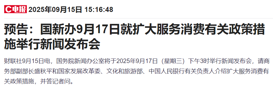最后收盘后消息面上国新办将于9月17日就扩大服务消费有关政策措施举办新闻发布会,不排除17号当天会有一波脉冲,如果政策有比较大的超预期的话。要潜伏的话,周一周二这两天是比较好的机会的,周三的话,就要注意,谨防资金的兑现。
