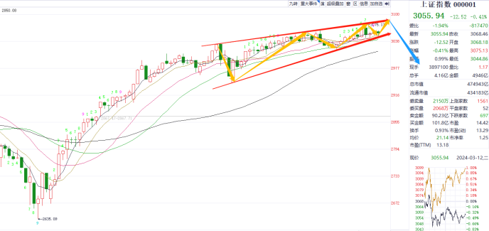 加之,小节奏技术形态上,目前不论沪指还是沪深300指数,均呈现出楔形结构走势:高点慢慢抬高,一旦出现调整则容易大阴线破位。