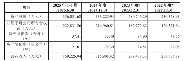 财务方面,于2022年度、2023年度、2024年度及2025年1-6月,公司实现营业收入约为25.67亿元、28.95亿元、31.59亿元、15.92亿元人民币。