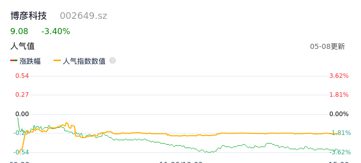 05月08日,博彦科技收报9.08,股价涨幅-3.40%,成交金额1.64亿元,换手率3.23%。