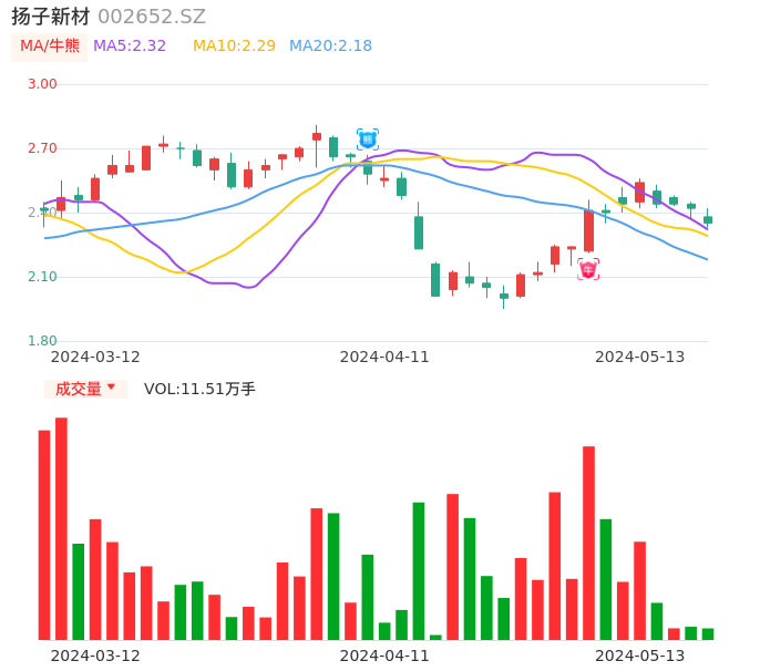 扬子新材牛熊点指标分析报告-20240513