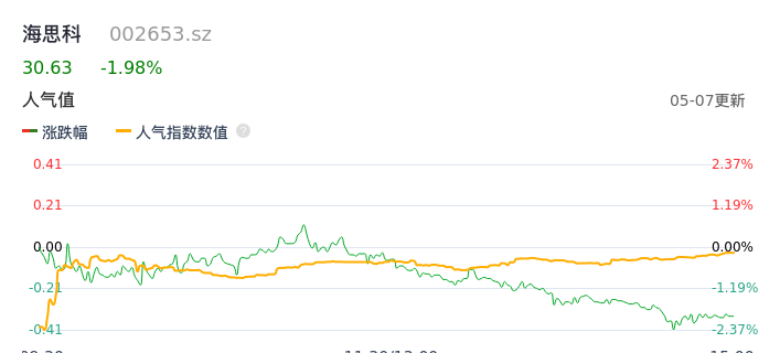 05月07日,海思科收报30.63,股价涨幅-1.98%,成交金额9055.64万元,换手率0.57%。