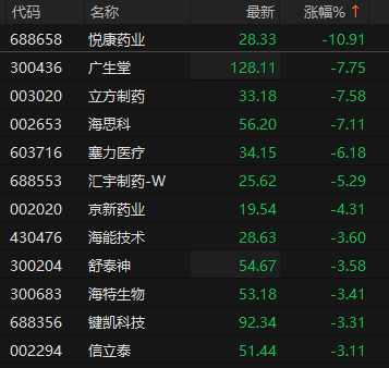 上证报中国证券网讯 8月27日午后,创新药概念震荡调整,截至13时15分,悦康药业跌超10%,立方制药、广生堂、海思科跌逾7%,塞力医疗、汇宇制药等跟跌。