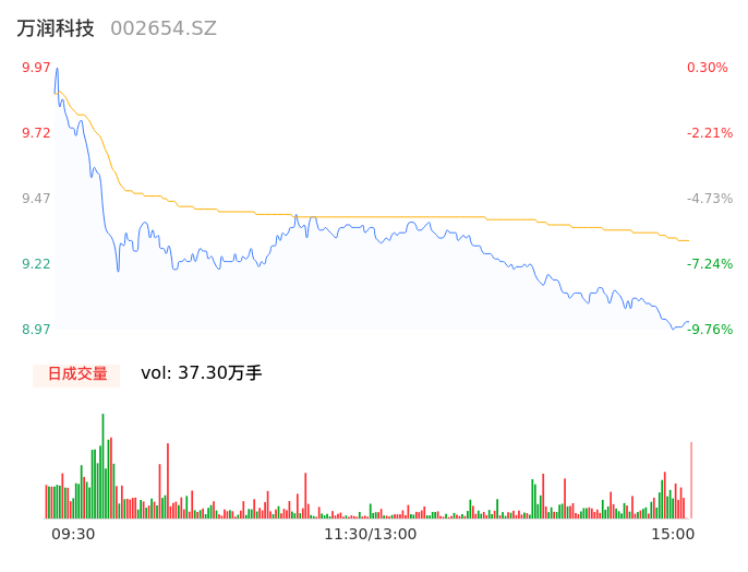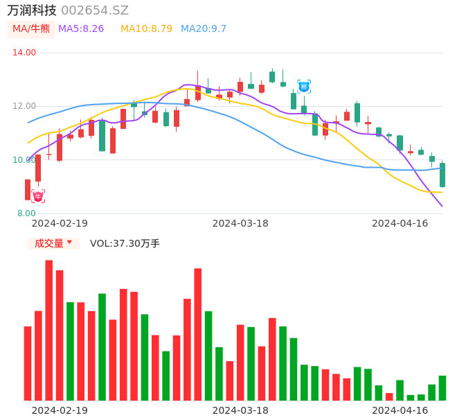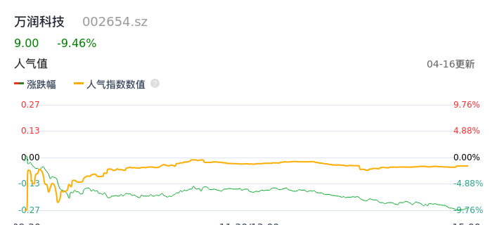 04月16日,万润科技收报9.00,股价涨幅-9.46%,成交金额3.47亿元,换手率4.76%。