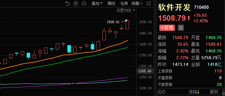 科创方向的半导体4只20厘米,涨幅超10%的近10只成为市场绝对的进攻核心。它的火爆也带动了整个科技板块的其他分支。