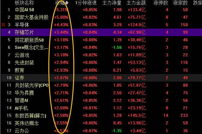 昨天才在午间复盘中说到的存储芯片继续大涨,兆易创新昨天板没封住,今天情绪好,下午直接封死。前期15号复盘讲的佰维今天也有5个点,万润科技也是连续2天放量开始脉冲,距离上方的缺口也就3-4个点的距离,下周一不排除一个冲高就补了。不过今天芯片半导体情绪太火爆了,周末估计会降降温,下周就不宜再追高了,可以看看科技线中的其它相对低位的机会。硬件大涨完之后可以看看软件方向。