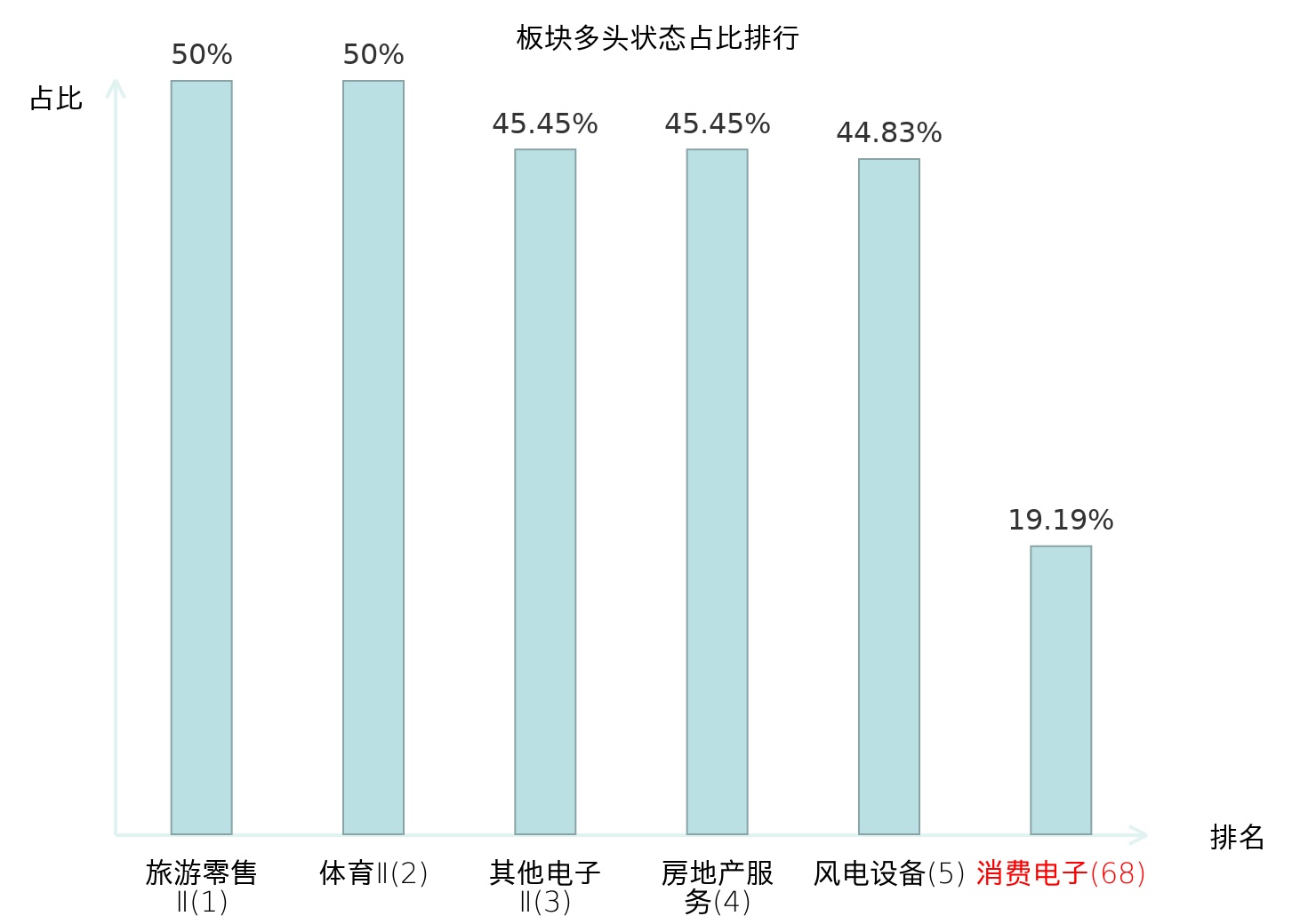 从主力宝信号数据分析,共达电声所属的消费电子板块中共19只股票处于主力多头状态,主力多头状态占比在全行业中排名第68位,较昨日上升1位。排名上升表明主力对于该板块整体看多意愿略有增强;较高的排名仍反映主力对该板块维持相对积极的态度。全市场所有行业板块中主力多头状态占比排名中,旅游零售Ⅱ板块位居第一;其他家电Ⅱ板块名次提升最快,较昨日上升112位。这些变动体现了主力资金在不同行业板块间的结构性偏好变化,为投资者评估板块相对强度及潜在趋势延续性提供了客观依据。