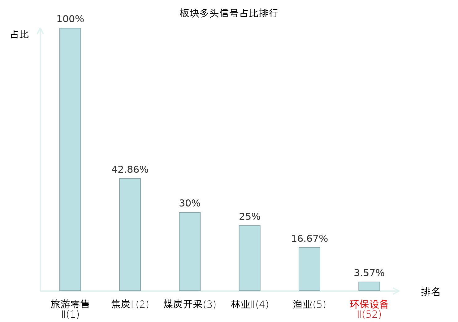 全市场所有行业板块中主力多头信号占比排名中,旅游零售Ⅱ板块位居第一。旅游零售Ⅱ板块名次提升最快,较昨日上升130位。