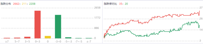 今天,大盘尾盘探底回升,创业板指领涨,沪指盘中再创年内新低。板块上,消费电子概念股集体走强,MR方向领涨,惠威科技、茂硕电源、亿道信息涨停。短剧概念股展开反弹,元隆雅图涨停。旅游酒店股震荡走强,曲江文旅、西安旅游涨停。PEEK概念股持续活跃,中欣氟材、新瀚新材、中研股份涨停。下跌方面,券商股盘中下挫,首创证券跌停。此外,高位股持续退潮,四川金顶、读者传媒等跌停。总体上两市个股涨多跌少,全市场超2600股上涨。
