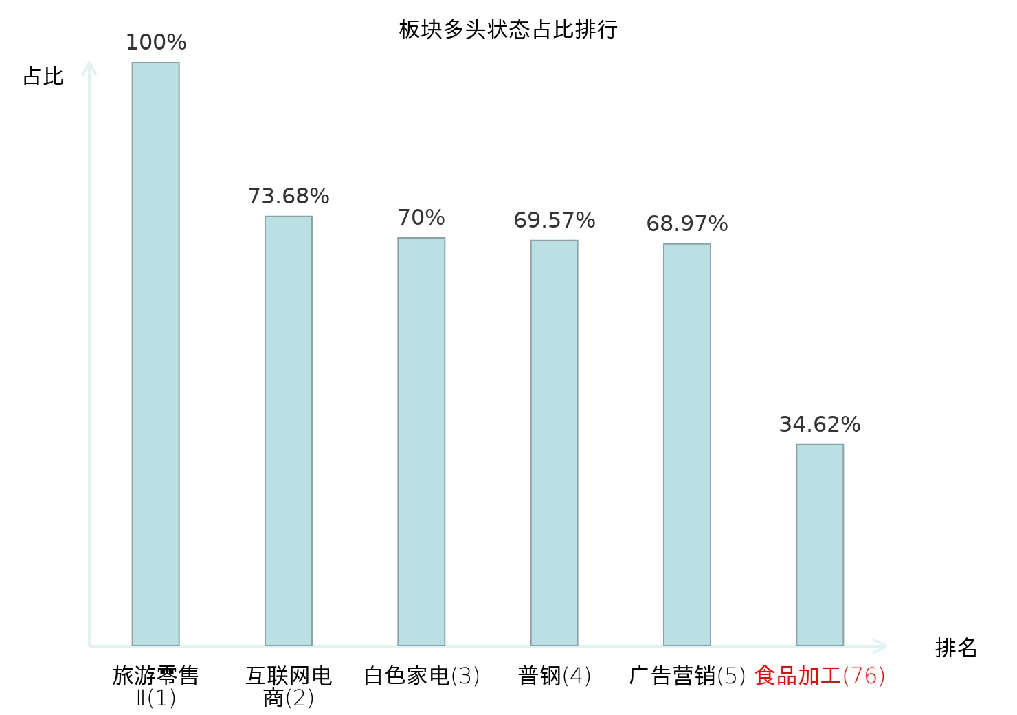 从主力宝信号数据分析,克明食品所属的食品加工板块中共9只股票处于主力多头状态,主力多头状态占比在全行业中排名第76位,较昨日上升5位。排名上升表明主力对于该板块整体看多意愿有所增强。全市场所有行业板块中,主力多头状态占比排名中,旅游零售Ⅱ板块位居第一;其他家电Ⅱ板块名次提升最快,较昨日上升66位。这些变动反映了不同行业间主力资金动向的趋势,为投资者提供了重要的市场参考信息。