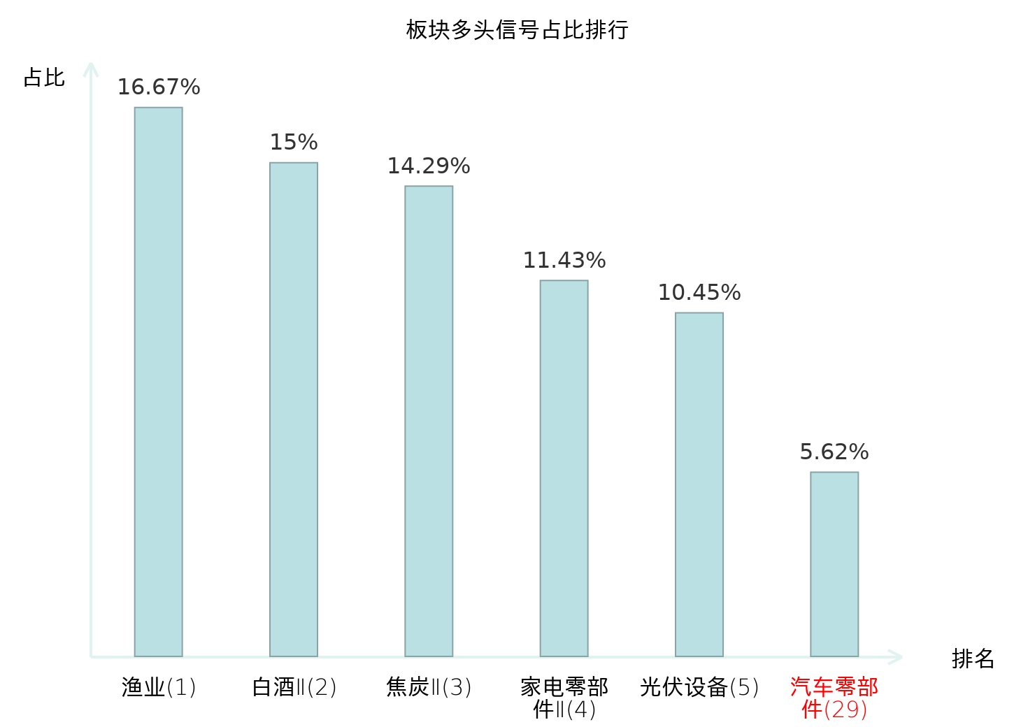 全市场所有行业板块中主力多头信号占比排名中,渔业板块位居第一。黑色家电板块名次提升最快,较昨日上升111位。