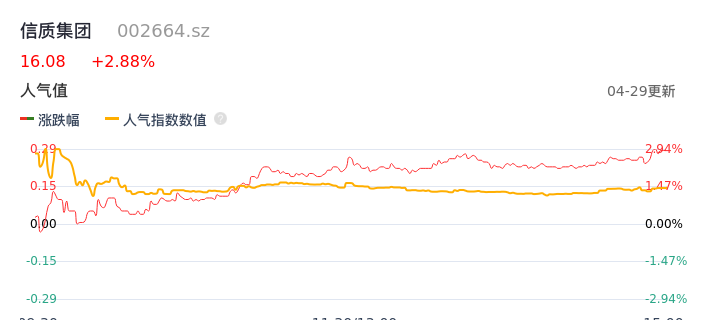 04月29日,信质集团收报16.08,股价涨幅2.88%,成交金额8297.26万元,换手率1.30%。