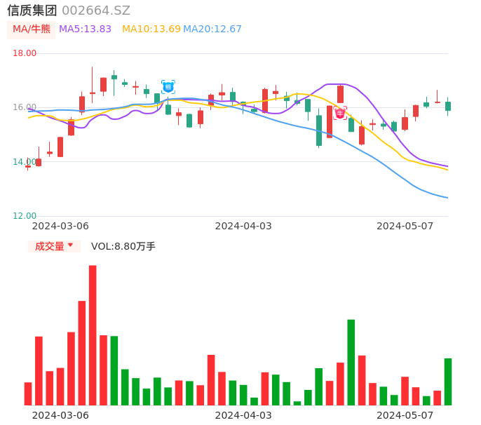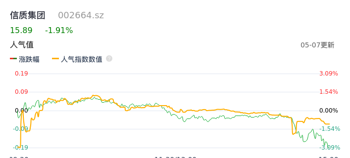 05月07日,信质集团收报15.89,股价涨幅-1.91%,成交金额1.41亿元,换手率2.20%。