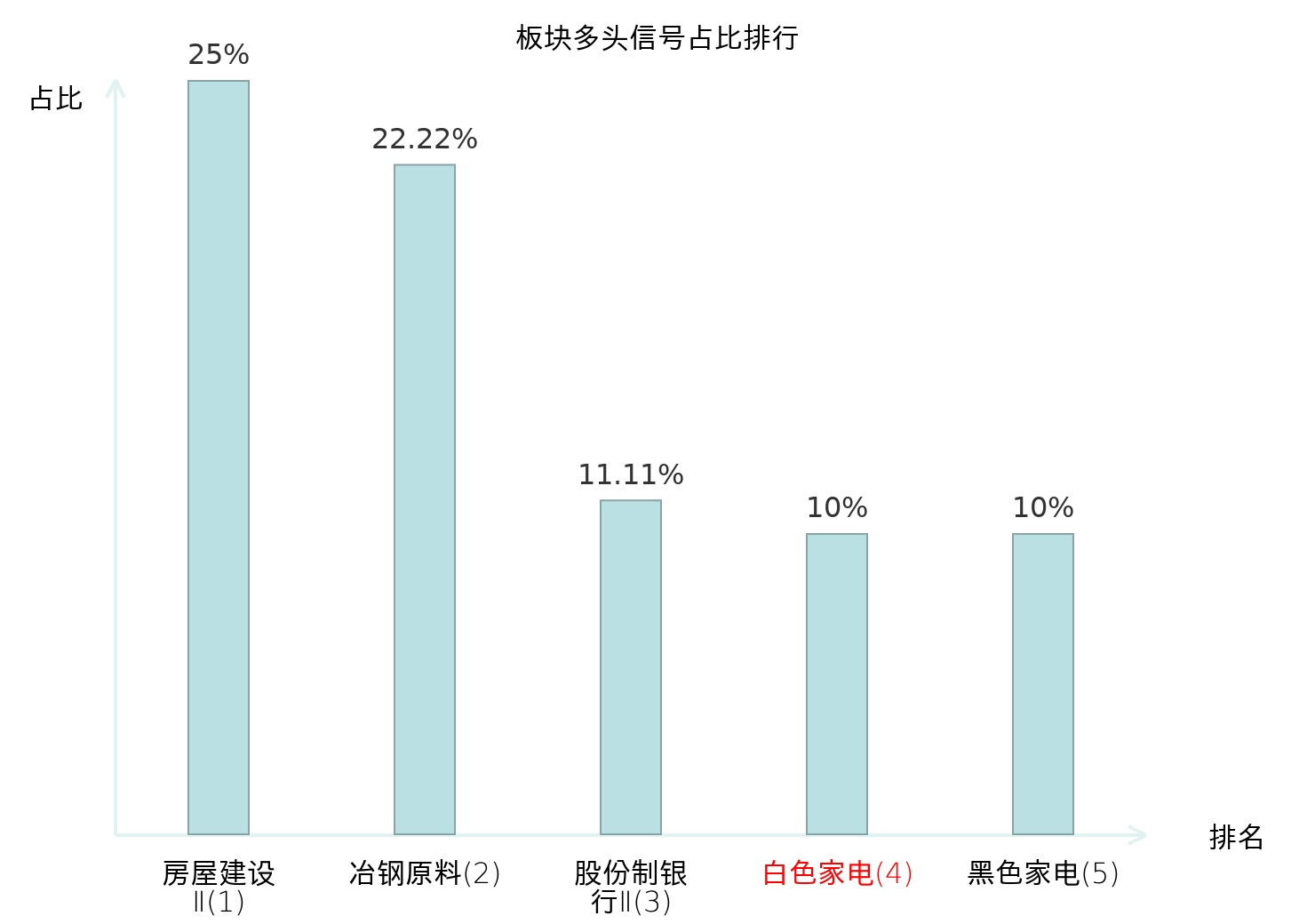 全市场所有行业板块中主力多头信号占比排名中,房屋建设Ⅱ板块位居第一。房屋建设Ⅱ板块名次提升最快,较昨日上升119位。