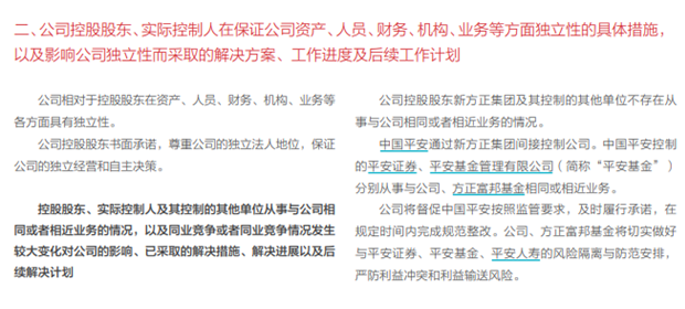 方正证券也曾表示,公司将督促实控人中国平安按照监管要求,解决公司与平安证券的同业竞争问题。