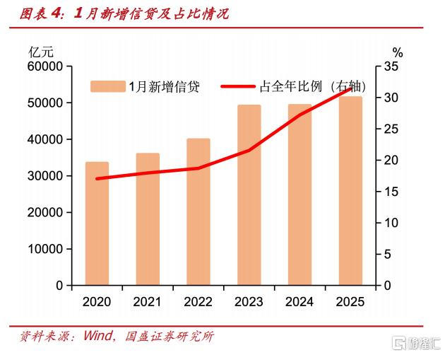除债券供给之外,信贷也存在年初冲量可能,这也可能对债市配置力量以及资金形成影响。过去几年,信贷投放节奏越来越前置。1季度信贷占全年比例从2020年的36.2%上升至2023年的46.6%,2025年估计会上升至59.8%,而1季度又会集中在1月份,1月信贷占全年比例从2020年的17.0%上升至2025年的31.4%。考虑到2026年春节较晚在2月中旬,因而1月信贷占比可能会更高,有可能上升至全年的35%甚至更高水平。2025年1月新增信贷5.13万亿,2026年1月存在上升至5.5万亿以上甚至更高的可能。年初信贷的集中投放一方面可能挤压银行资金,减少对债市的配置力量;另一方面,会增加资金需求,如果央行资金投放不足,资金面存在阶段性波动加大的可能。