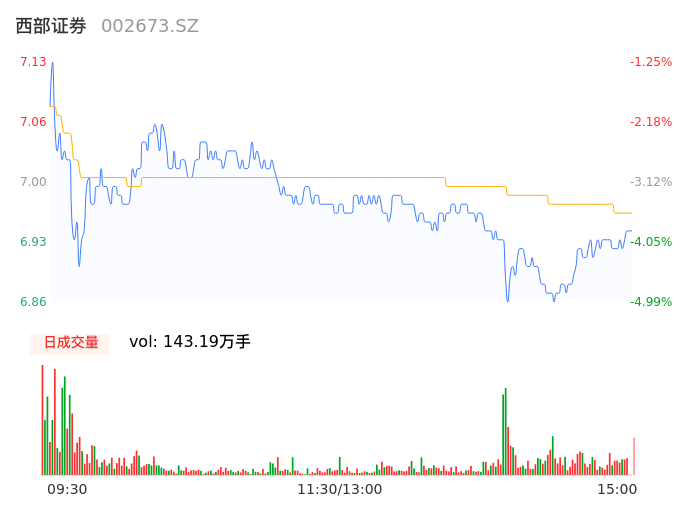 04月24日,西部证券收报6.95,股价涨幅-3.74%,成交金额9.97亿元,换手率3.48%。